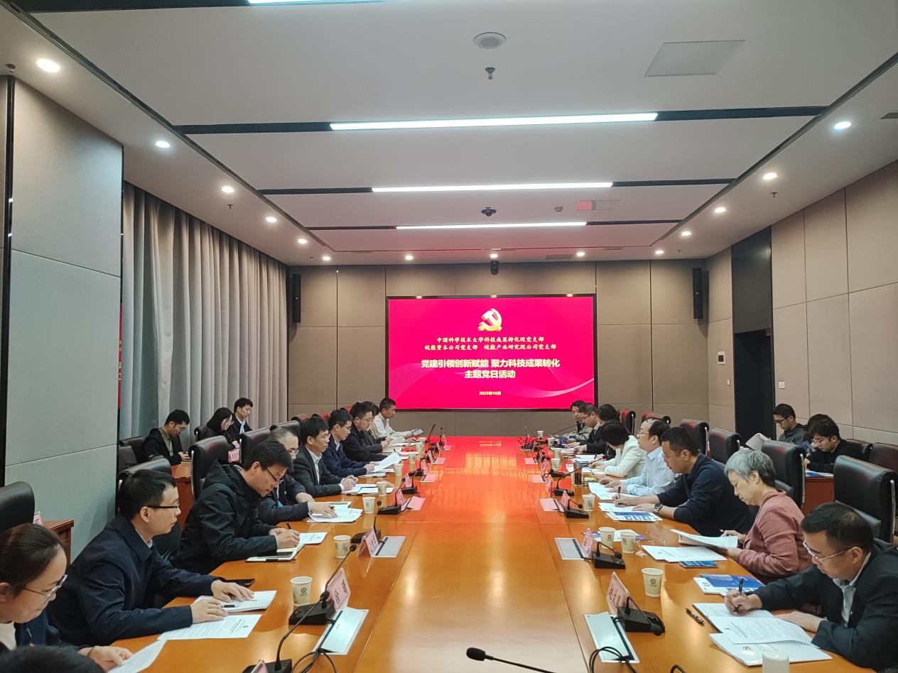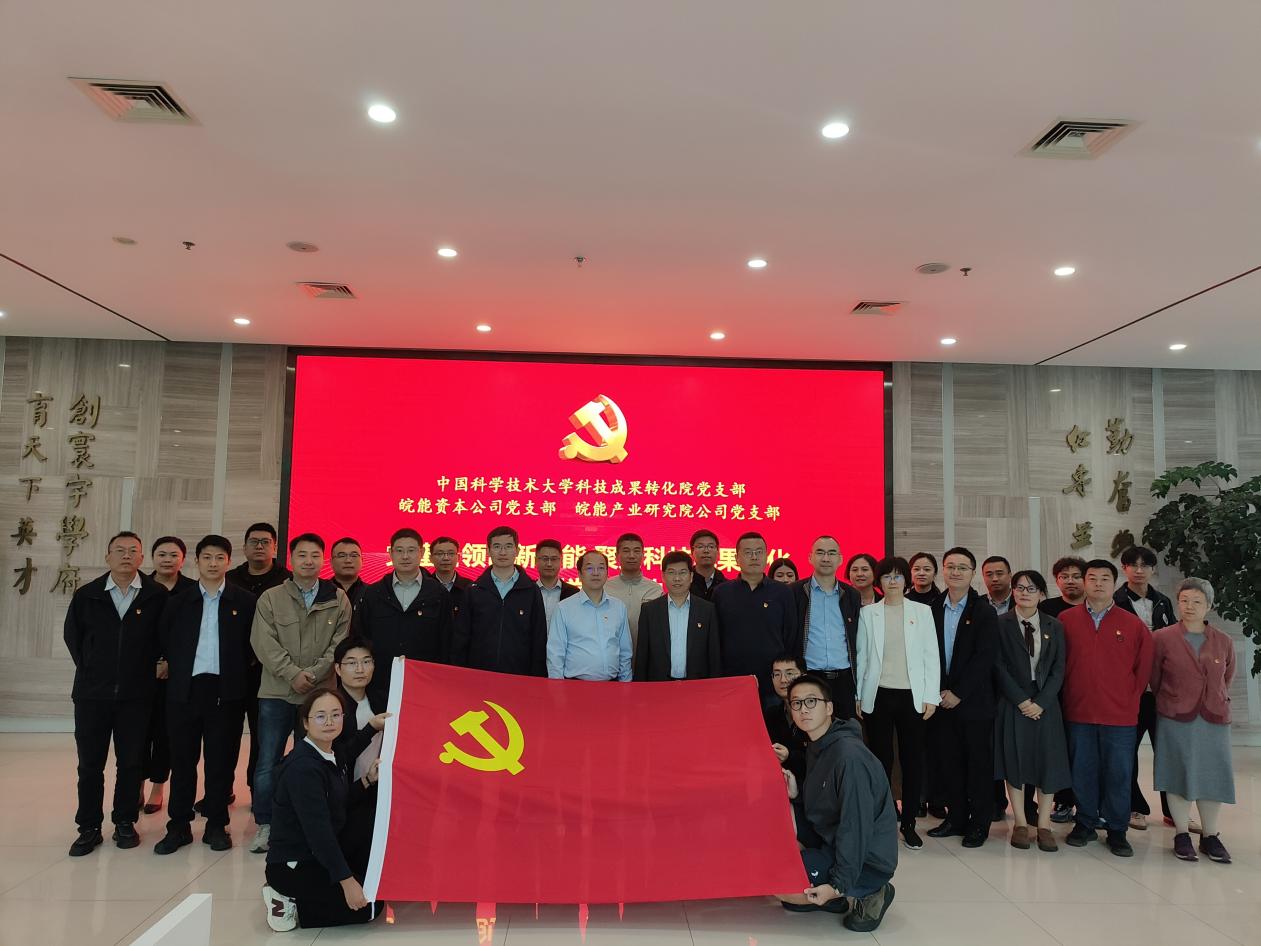 为深入贯彻落实党中央关于科技自立自强的重要部署,充分发挥党建引领作用,搭建高水平科技成果转化交流平台,10月13日,科技成果转化院党支部联合皖能资本公司党支部、皖能产业研究院公司党支部在中国科大东校区共同举办“党建引领创新赋能 聚力科技成果转化”主题党日活动。活动由科技成果转化院党支部书记吴长征主持。