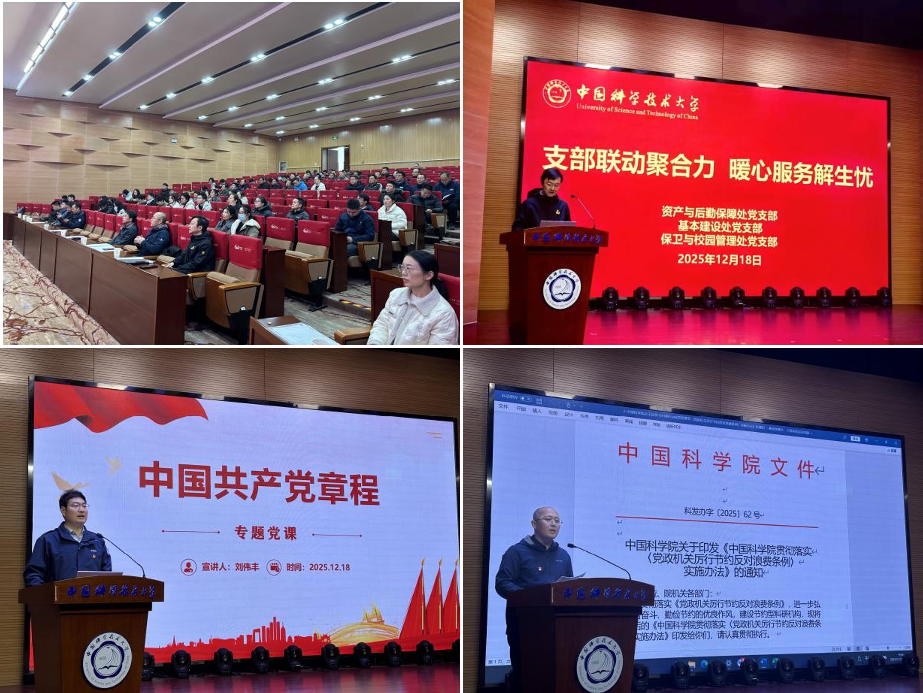 活动伊始,保卫与校园管理处党支部书记、处长刘伟丰为全体党员讲授《中国共产党章程》专题党课,深刻解读党章新思想、新要求,引导全体党员牢固树立党章意识。他强调,“后勤保障工作关系师生切身利益,全体党员要自觉将党章要求内化于心、外化于行,在‘急难愁盼’问题面前主动担当作为,用实际行动践行党的宗旨。”